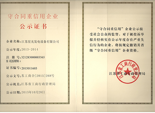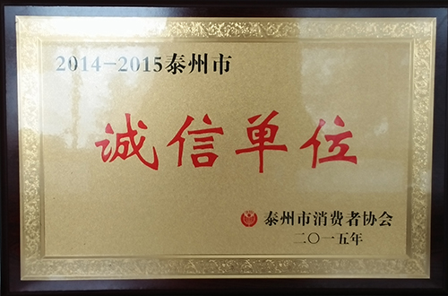 资质名称: 2014-2015年度泰州市诚信单位 |