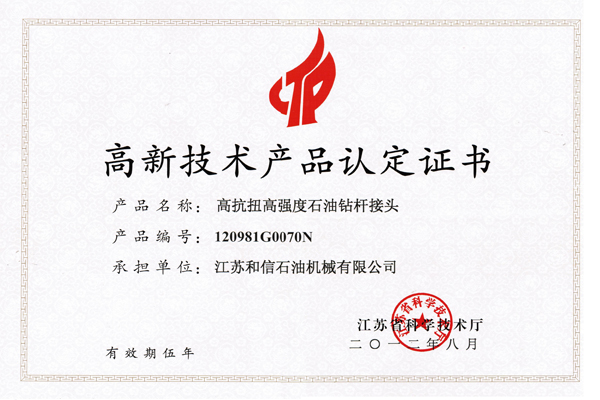 产品名称: 高抗扭高强度石油钻杆接头证书 |
