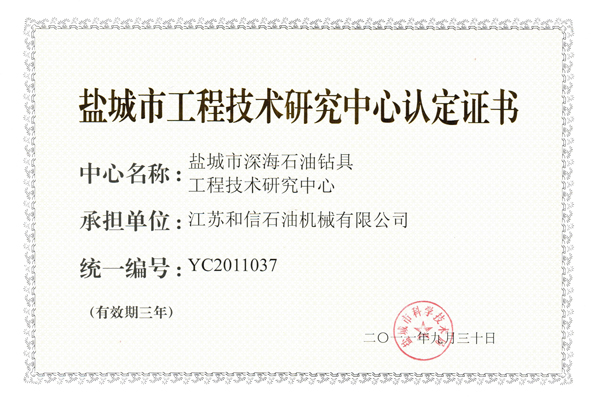 产品名称: 深海石油钻具研究中心证书 |