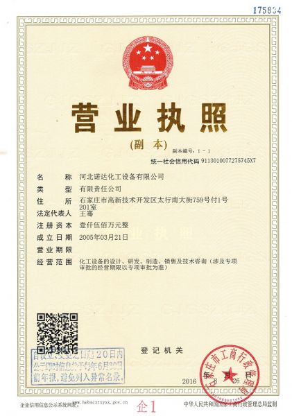 | 持证单位: 河北诺达化工设备有限公司 |
