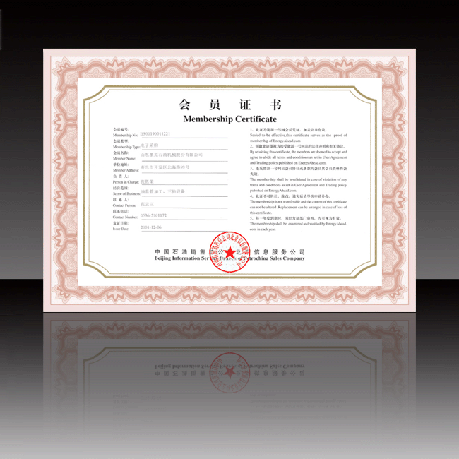 能源一号网会员证书