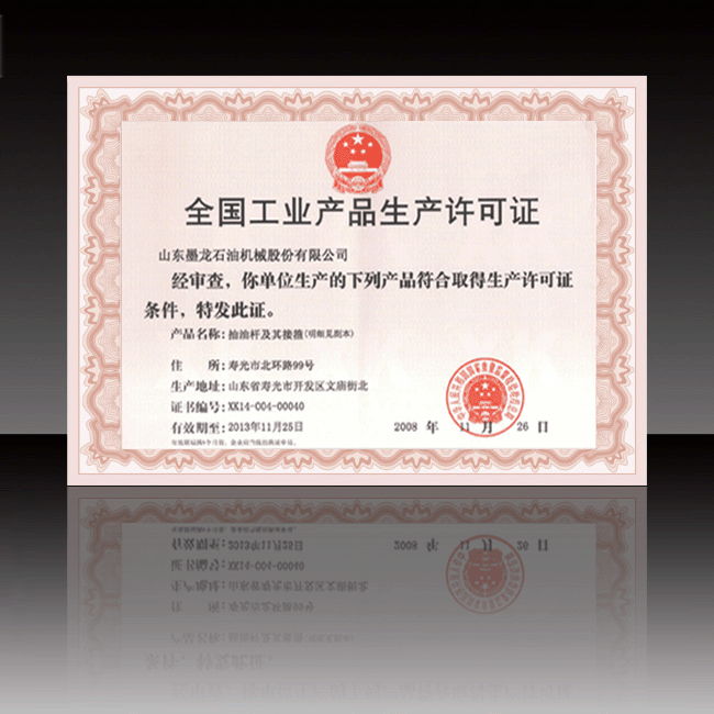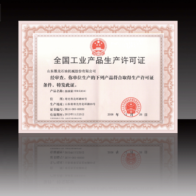 全国工业产品生产许可证(抽油泵)