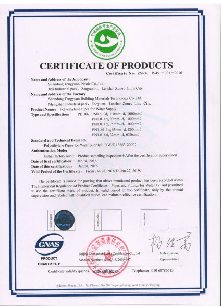 腾远股份,旗下下设山东腾远塑业有限公司、山东联邦塑胶股份有限公司,拥有有山东、河北、辽宁、甘肃、湖南五大生产基地,专业生产PE给水管材、PE燃气管材及PE阻燃、抗静电矿用管材、PE地源热泵管材、PE虹吸排水管材、PERT地暖管材以及配套PE给水管件、PE燃气管件、PE阻燃、抗静电矿用双抗管件、PE地源热泵管件、PE喷塑防腐钢法兰片、PE球阀、PERT地暖管件、PE虹吸排水管件等系列产品的高新技术企业。 公司总占地面积300余亩(山东生产基地占地面积80亩),总公司位于山东省临沂市兰山区枣沟头集西工业园,距离临沂河东国际机场仅20公里,建筑面积60000余平方米,拥有固定资产8000多万元,现有员工390多人,专业技术人员36名,工程师12名,高级工程师4名。公司拥有国际先进水平全电脑控制¢20-¢1600各类PE管材生产线32条,拥有专用注塑机以及各种辅助设备90余台套,...... [ 查看详情 ]