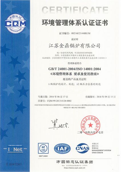 产品名称: 环境管理体系认证证书 |