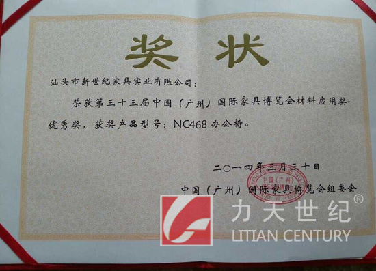 产品名称: 第三十三届中国(广州)国际家具博览会优秀奖 |