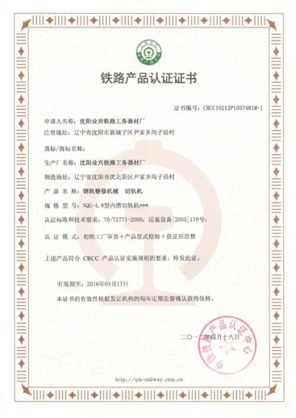 产品名称: 铁路产品认证证书5 |