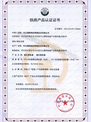 河北通海瑞宏铁路机具有限公司座落于石家庄天山国际制造产业园凤凰北街8号。   公司倡导员工坚持“卓越品质、真诚服务、齐心协力、勇于创新”的理念服务于广大客户。公司全面深化产品质量,建立完善的质量管理体系,通过了ISO9001质量认证,中铁检验认证中心CRCC认证证书,产品多次通过铁科院质量检验中心检验(如起复机具、抬轮器、救援工具等)。   为适应铁路快速发展,满足救援设备轻便快捷的要求,我公司是国内最早一家把三级钛合金液压起复机具运用到实际救援中的厂家,得到了铁道部和各铁路局领导的一致赞美和好评,铁路救援起复设备迎来一次革命性变革。起复机具通过了太原局科技成果鉴定,并获得了国家级新型实用专利。   为解决连体货车或大型养路机械等中间车轮脱线后救援难题,我公司投入大量人力、物力研制出无动力...... [ 查看详情 ]